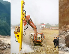 湖南吉首-龍工225挖機(jī)改全液壓鑿巖鉆機(jī)(60-102孔徑一次進(jìn)桿3米可接桿到15米)
