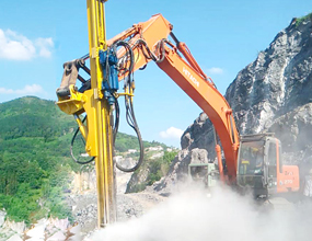 重慶酉陽斗山225挖機(jī)改全液壓鑿巖鉆機(jī)打80孔5.5米帶吸塵