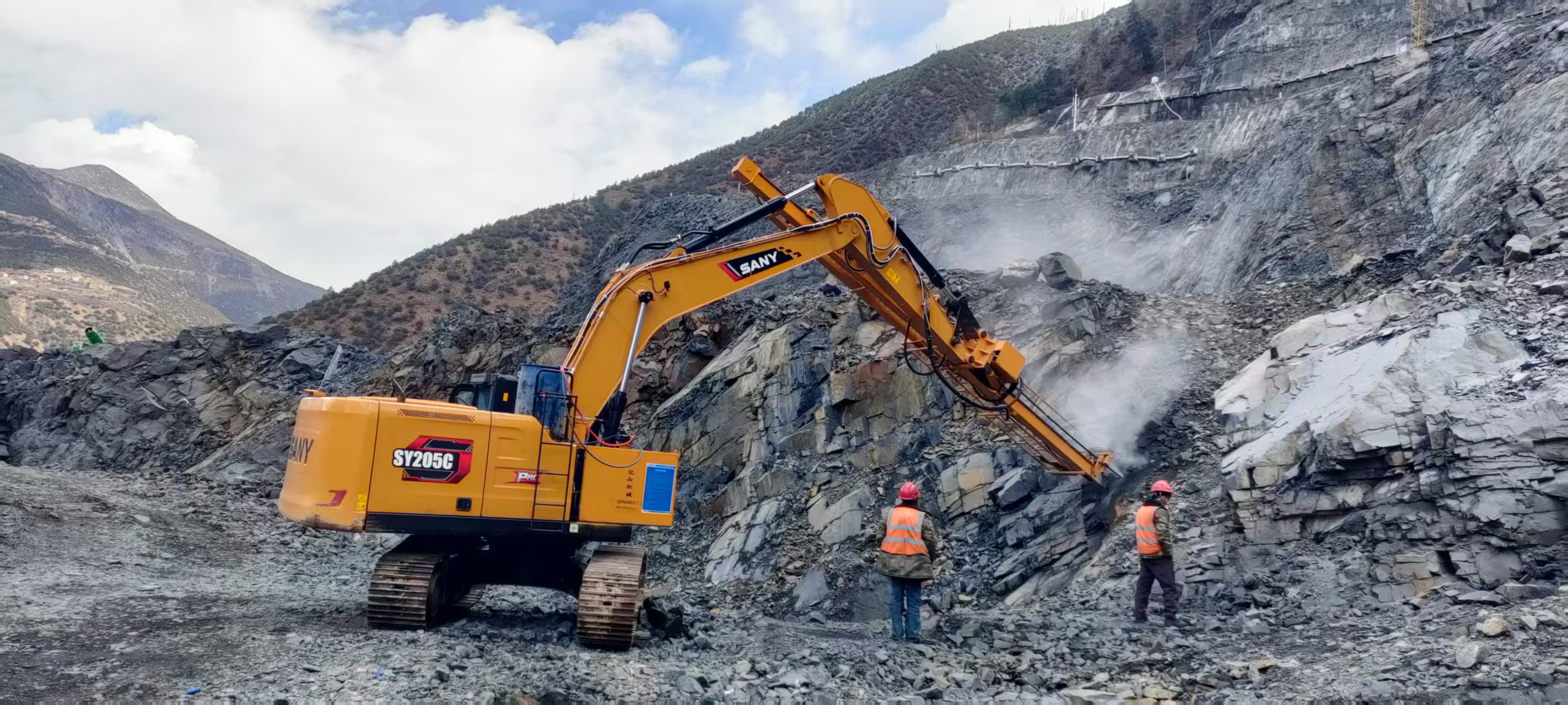 西藏墨脫--冰天雪地的挖改液壓鑿巖機(jī)
