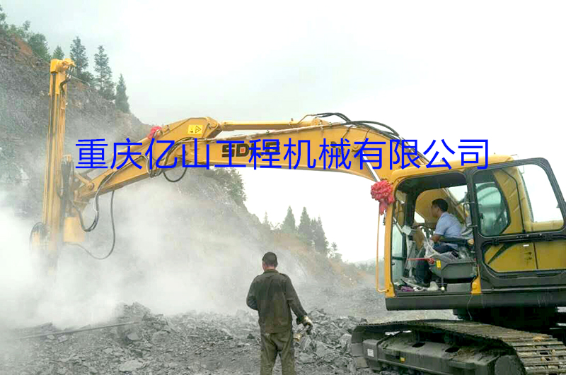湖南吉首-龍工225挖機(jī)改全液壓鑿巖鉆機(jī)(60-102孔徑一次進(jìn)桿3米可接桿到15米)