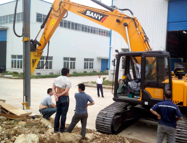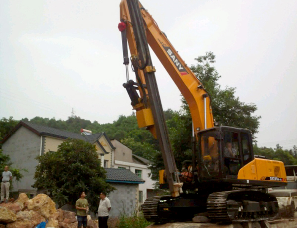 2、前后左右自由伸展,當(dāng)挖掘機(jī)在工地不平坦的情況下, 挖機(jī)手可根據(jù)位置不同調(diào)整鉆桿角度,保持90°垂直鉆孔。