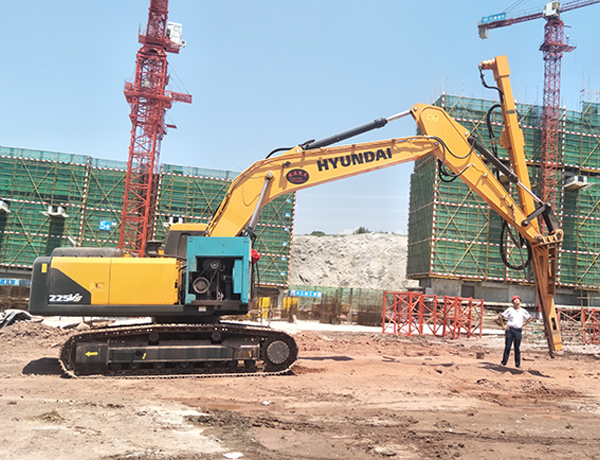 3、作業(yè)半徑擴大化 。因為挖掘機小臂不拆,它的作業(yè)半徑可以延長作業(yè)半徑2-3米,且仰角打孔、水平打孔、豎直打孔都可以實現(xiàn)。