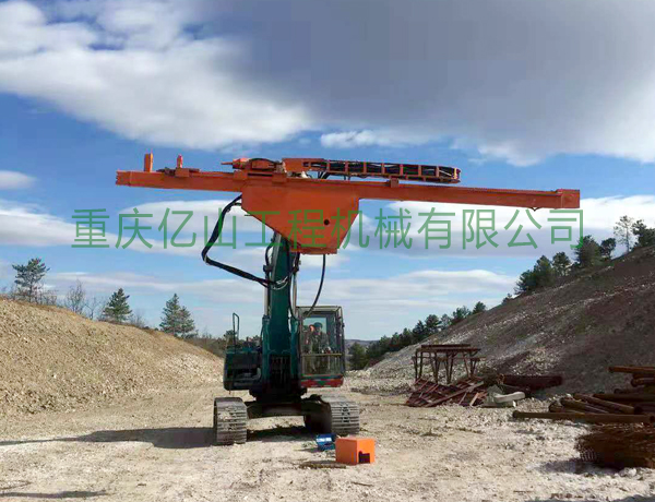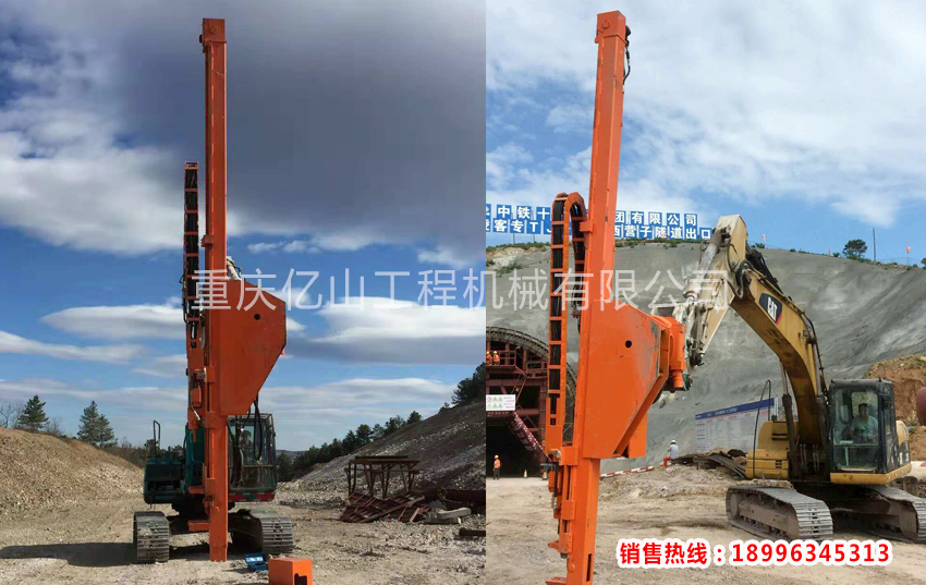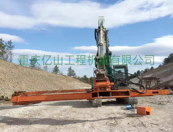 2、前后左右自由伸展,當(dāng)挖掘機(jī)在工地不平坦的情況下, 挖機(jī)手可根據(jù)位置不同調(diào)整鉆桿角度,保持90°垂直鉆孔,爭取實(shí)現(xiàn)有效爆破。