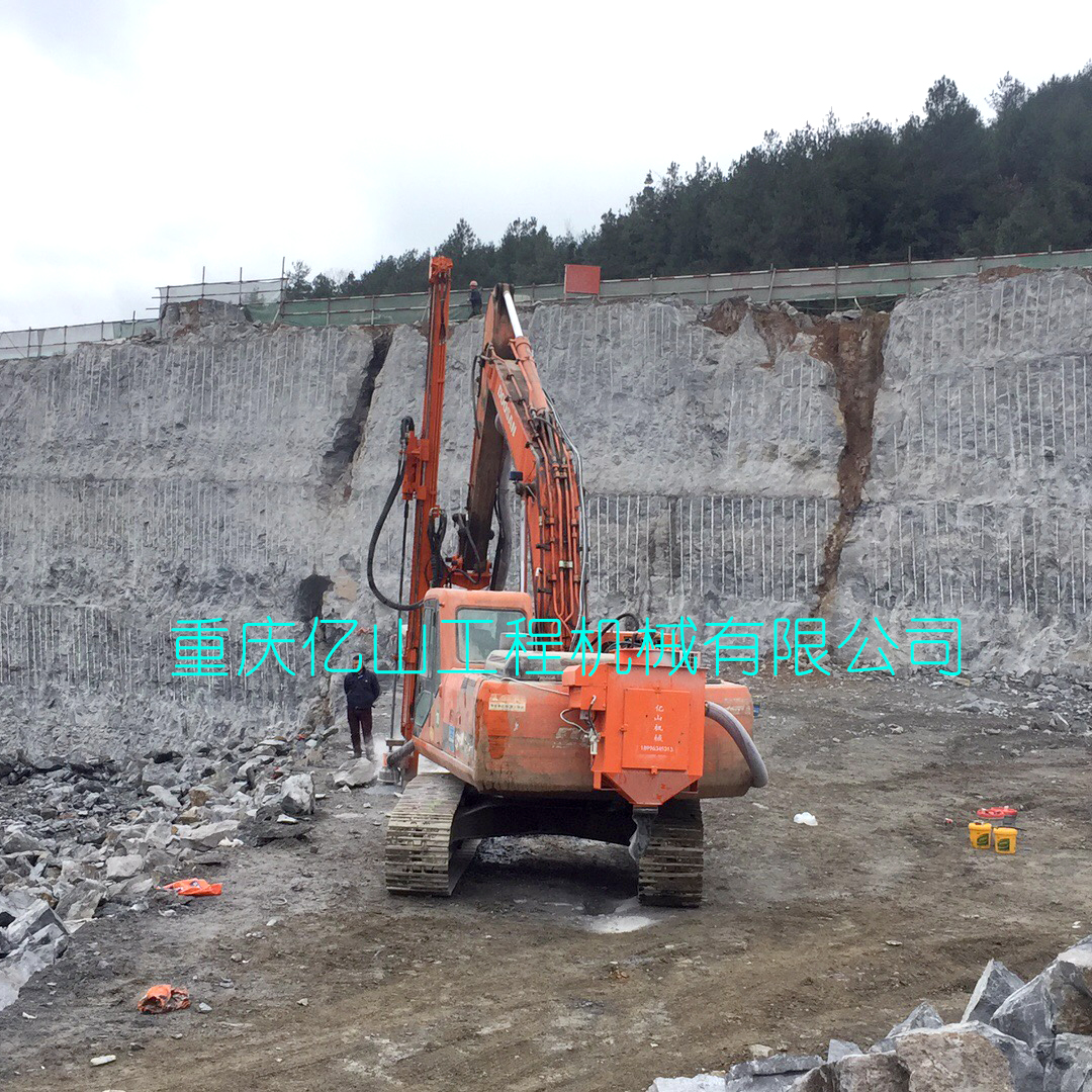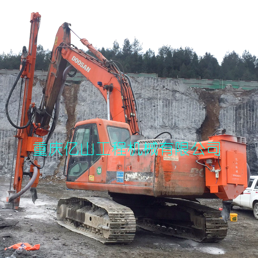 重慶酉陽(yáng)--斗山225挖機(jī)改全液壓鑿巖鉆機(jī)打80孔5.5米帶吸塵