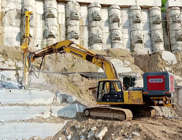 挖機改鉆機為您開啟了新的施工方法。挖斗+破碎錘+切削鉆機 +潛孔鉆機,一機多用,為您降低成本。無論您是從事采石業(yè)、采礦業(yè)、土建工程、鋼鐵工業(yè)、光伏工程、隧道工程或路橋工程,在許多傳統(tǒng)方法失效或成本高的地方,您都可以借助這靈活、耐用、噪音小且震動低的特種機器。