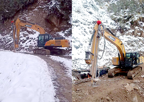 喜馬拉雅山和念青唐古拉山平行伸展,東與橫斷山脈對(duì)接。兩大洋的暖流常年交匯,順著世界最深峽谷——雅魯藏布江大峽谷魚(yú)貫而入,造就年降雨量650毫米的奇觀。這里的山道高聳入云,“九曲十八彎”。車(chē)子上不去,下來(lái)的,往往是暴雨夾著滾石。多年來(lái),這里地質(zhì)災(zāi)害頻發(fā),一直被視為工程機(jī)械的“服務(wù)禁區(qū)”。