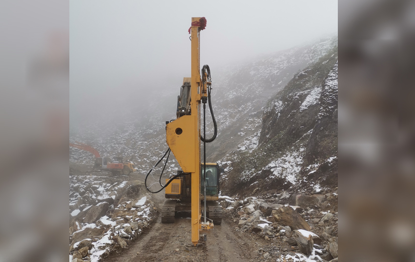 西藏墨脫--冰天雪地的挖改液壓鑿巖機