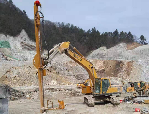 億山ES300挖改全液壓鑿巖機(jī),廣泛適用于花崗巖、石灰石、大理石、火山石、青石、玄武巖等硬度較高的堅巖石的各種爆破前鉆孔作業(yè)(硬度F大于6級);可以借助挖機(jī)的操作靈活性用于錨桿鉆孔;也遠(yuǎn)遠(yuǎn)低于一體式鑿巖鉆機(jī)的采購價格。具操作簡易,設(shè)計人性化,感觀直接,實(shí)現(xiàn)挖掘機(jī)一機(jī)多用等特性。