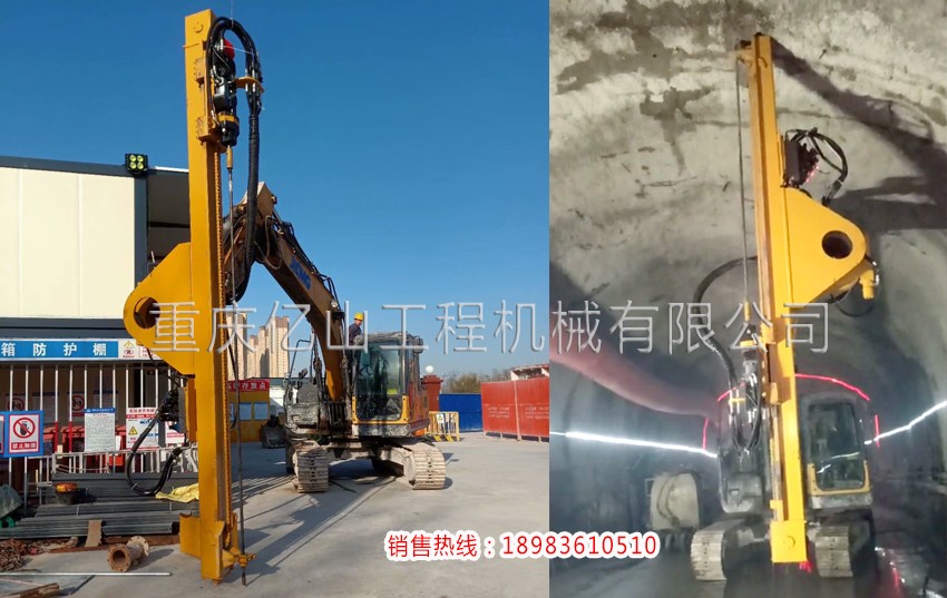 1、安裝拆卸方便。挖掘機(jī)小臂不用拆卸,不影響挖掘機(jī)自身功能,直接類似掛破碎錘一樣,管路系統(tǒng)都可以共用,真正實(shí)現(xiàn)一機(jī)五用并互換:挖土、破碎錘、切削鉆、鑿巖機(jī)、潛孔鉆。拆卸時(shí)間和換斗時(shí)差不多。