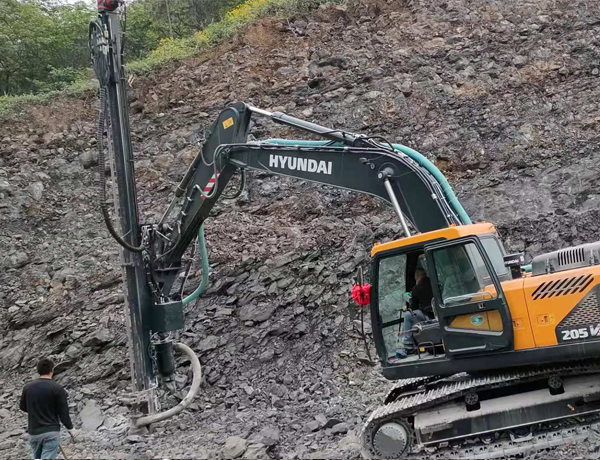 億山ES300挖改全液壓鑿巖機(jī),廣泛適用于花崗巖、石灰石、大理石、火山石、青石、玄武巖等硬度較高的堅(jiān)巖石的各種爆破前鉆孔作業(yè)(硬度F大于6級(jí));可以借助挖機(jī)的操作靈活性用于錨桿鉆孔;也遠(yuǎn)遠(yuǎn)低于一體式鑿巖鉆機(jī)的采購價(jià)格。具操作簡易,設(shè)計(jì)人性化,感觀直接,實(shí)現(xiàn)挖掘機(jī)一機(jī)多用等特性。
