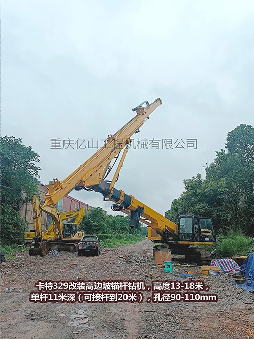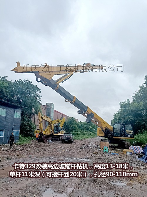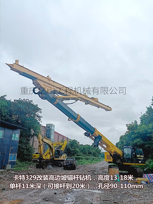 卡特329改裝高邊坡錨桿鉆機(jī),高度13-18米,單桿11米深(可接桿到20米),孔徑90-110mm