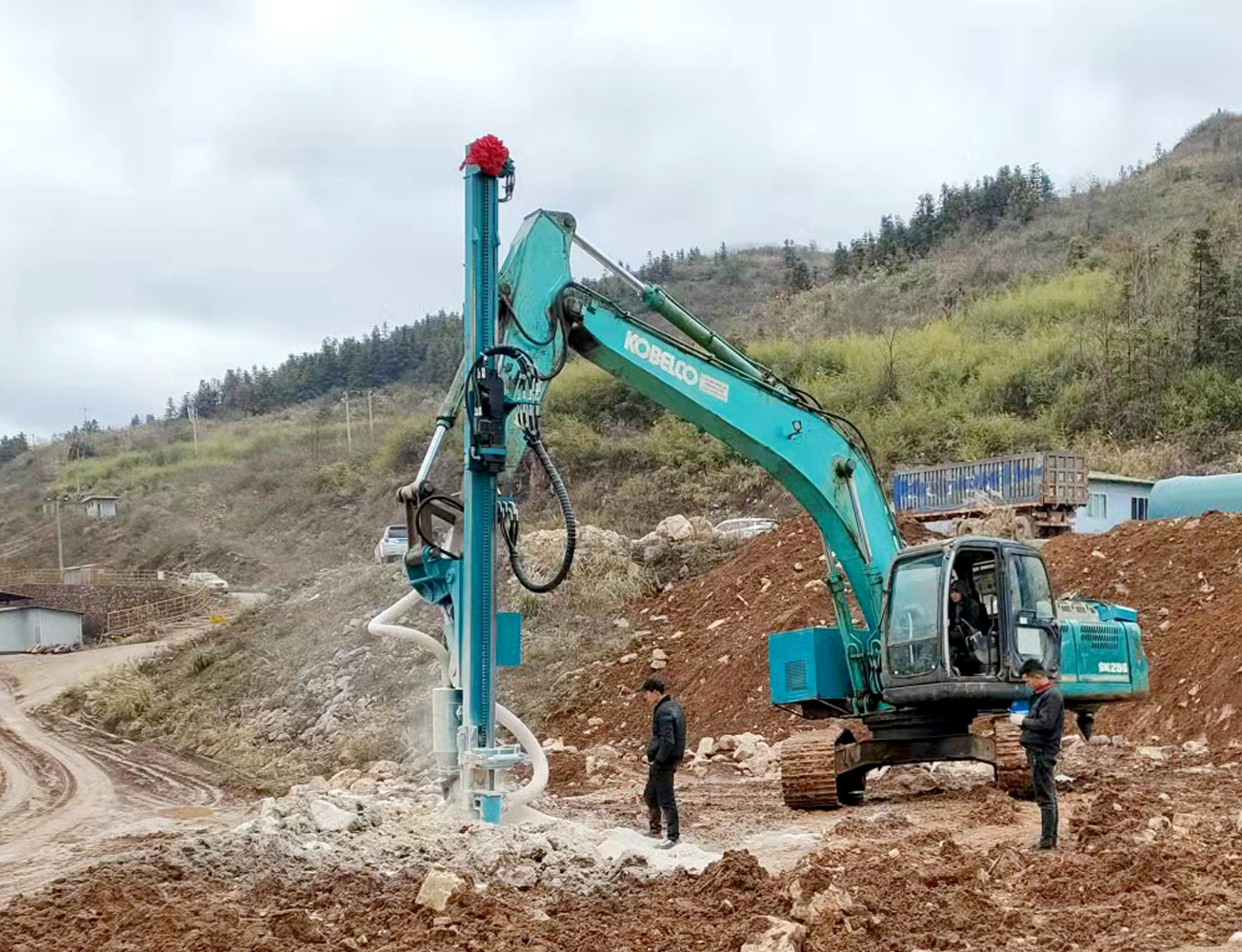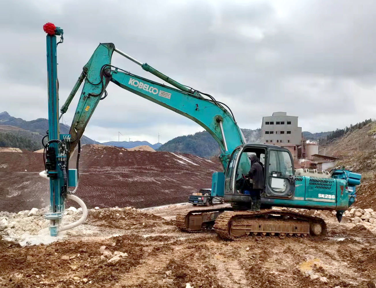 貴州凱里--神鋼挖掘機(jī)改裝鑿巖機(jī)鉆機(jī)90孔4.3米加吸塵