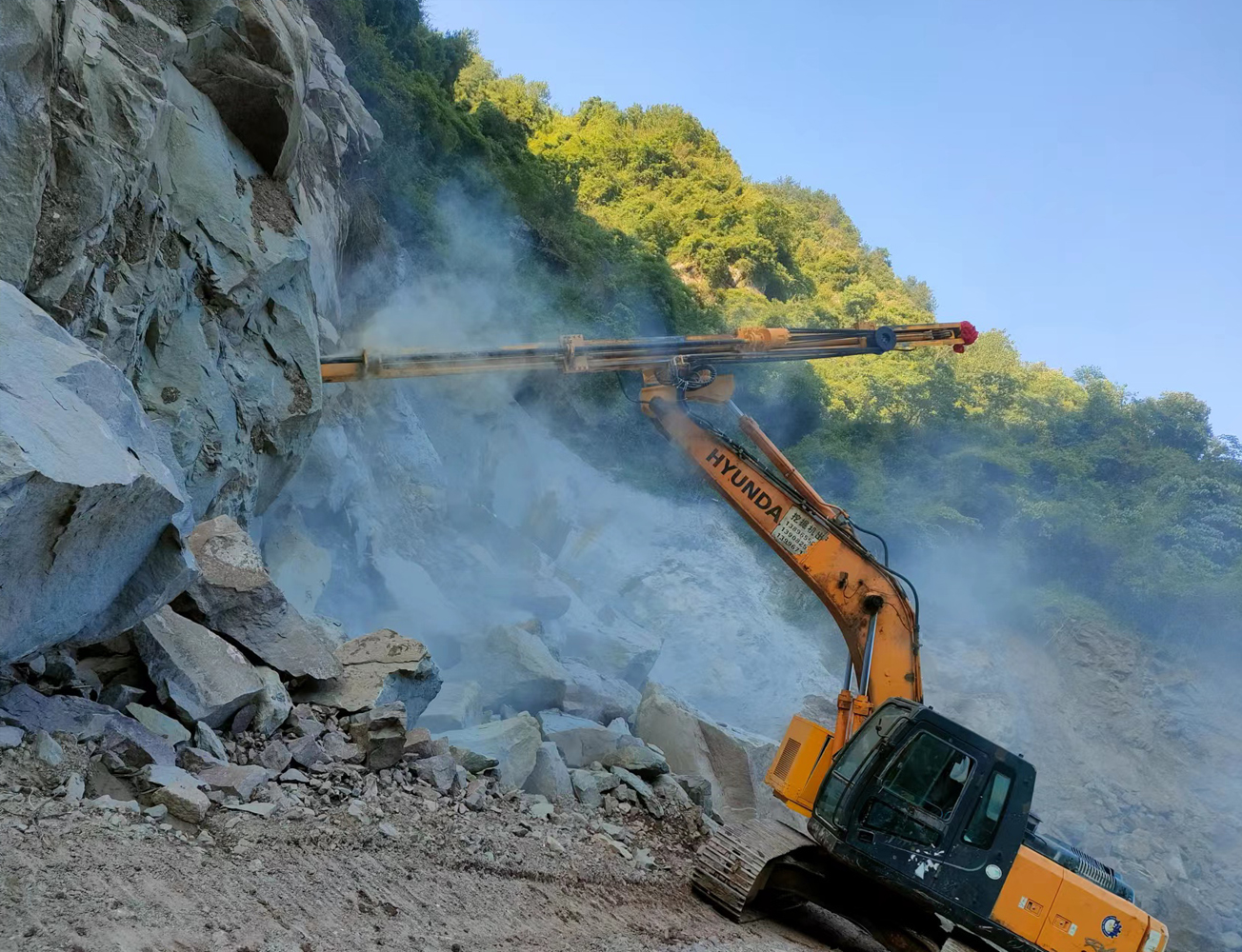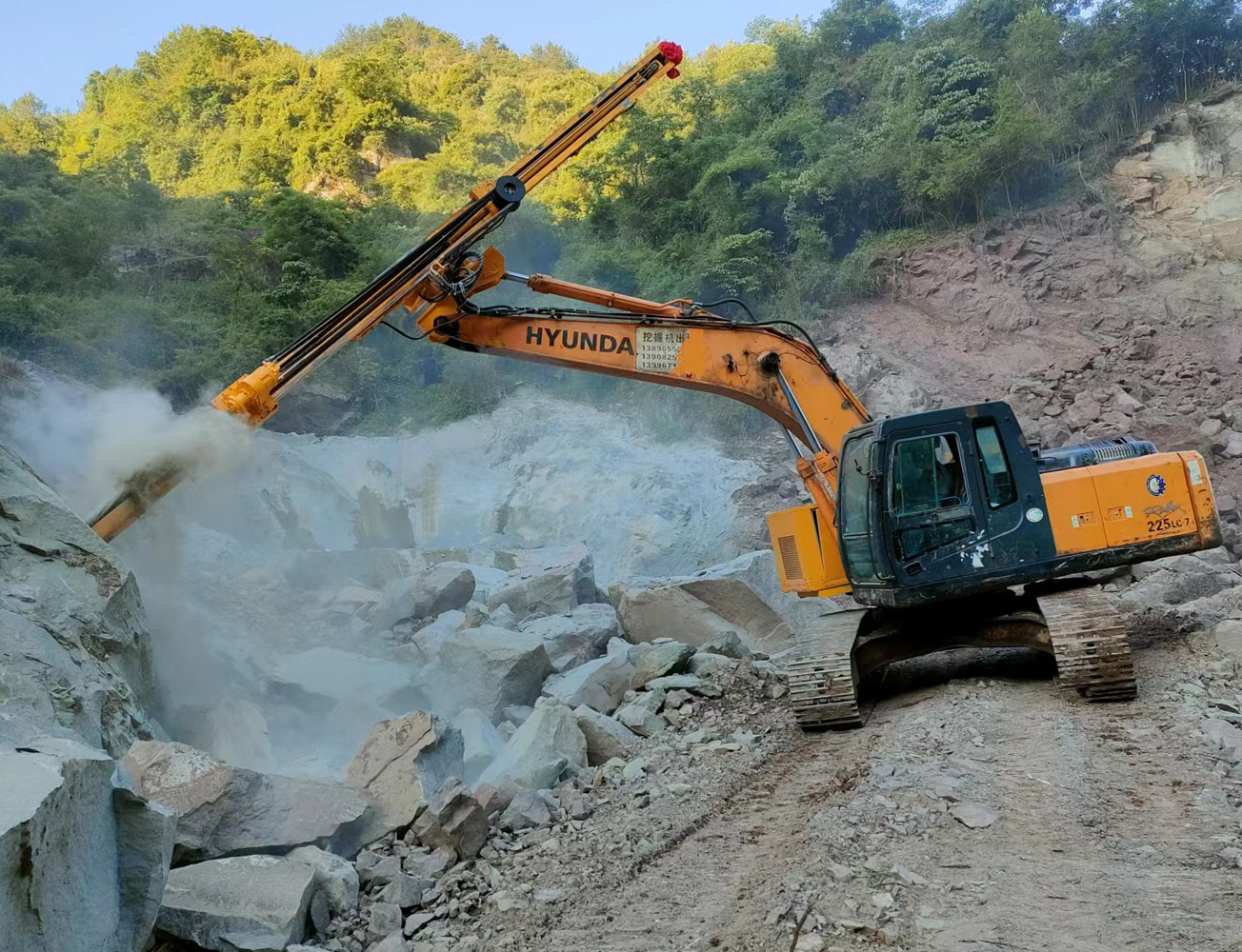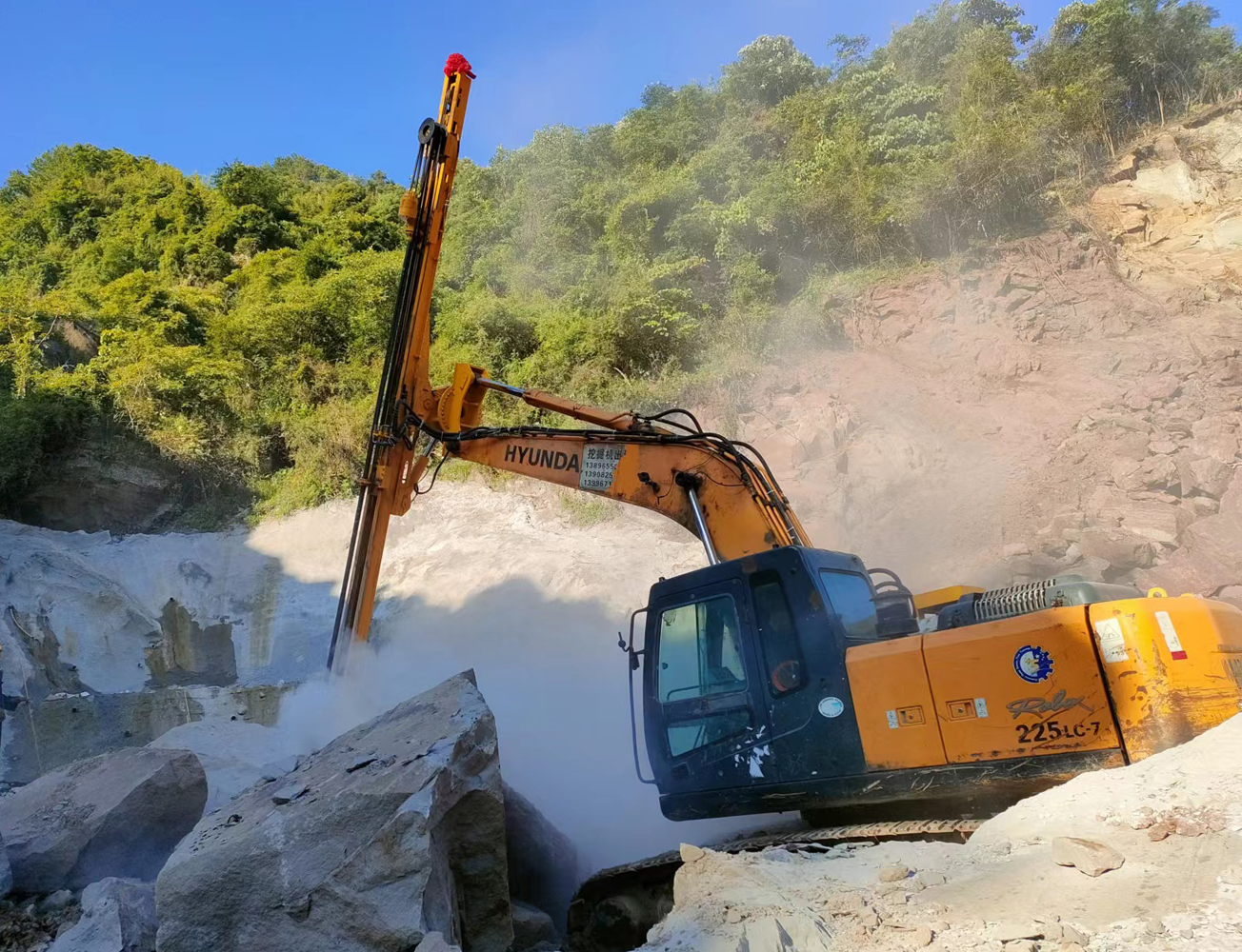 挖機(jī)改鉆機(jī)為您開啟了新的施工方法。挖斗+破碎錘+切削鉆機(jī)+鑿巖鉆機(jī)+潛孔鉆機(jī),一機(jī)多用,為您降低成本。無論您是從事采石業(yè)、采礦業(yè)、土建工程、鋼鐵工業(yè)、隧道工程或路橋工程,在許多傳統(tǒng)方法失效或成本高的地方,您都可以借助這靈活、耐用、噪音小且震動(dòng)低的特種機(jī)器。