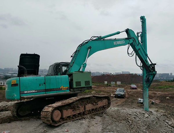 2、前后左右自由伸展,當(dāng)挖掘機(jī)在工地不平坦的情況下, 挖機(jī)手可根據(jù)位置不同調(diào)整鉆桿角度,保持90°垂直鉆孔。