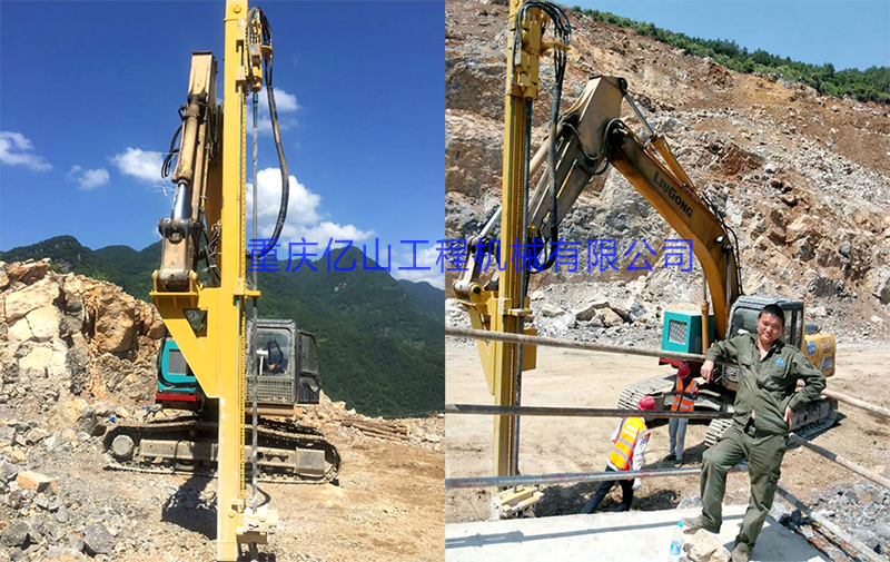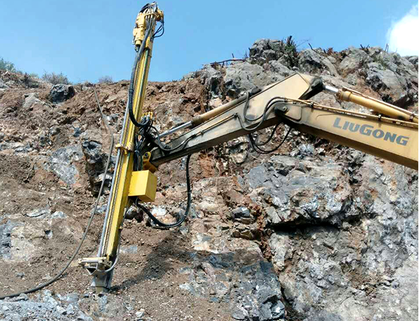 億山ES300挖改全液壓鑿巖機,廣泛適用于花崗巖、石灰石、大理石、火山石、青石、玄武巖等硬度較高的堅巖石的各種爆破前鉆孔作業(yè)(硬度F大于6級);可以借助挖機的操作靈活性用于錨桿鉆孔;也遠遠低于一體式鑿巖鉆機的采購價格。具操作簡易,設(shè)計人性化,感觀直接,實現(xiàn)挖掘機一機多用等特性。