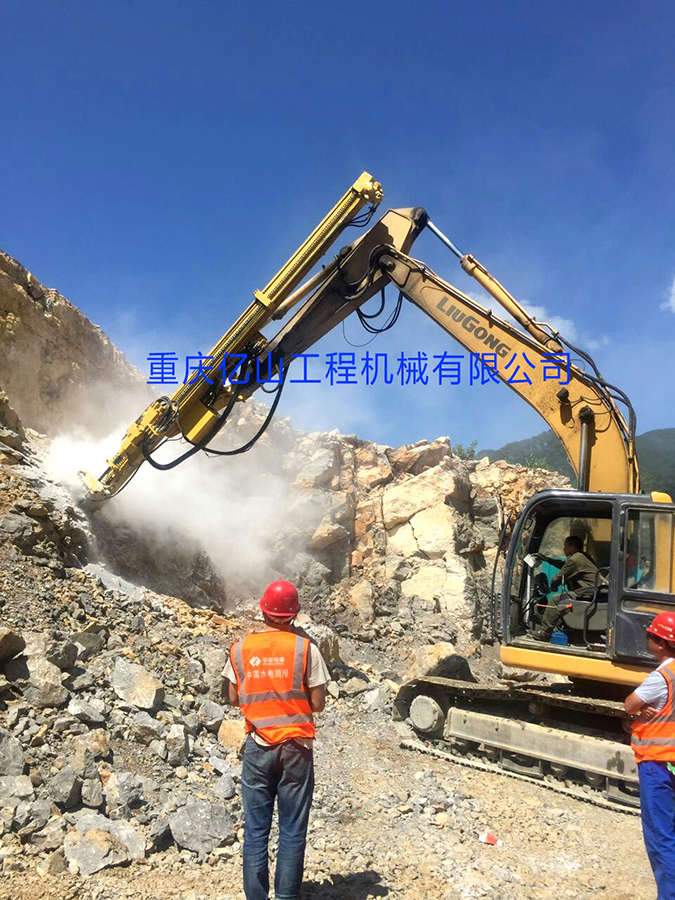 四川巴中-柳工挖機(jī)改全液壓鑿巖機(jī)(60-90孔5米)工地現(xiàn)場(chǎng)